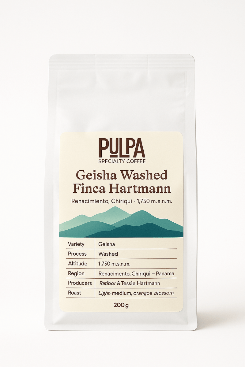 Our Geisha Washed Finca Hartmann is a refined, high-altitude coffee grown at 1,750 meters in the lush mountains of Renacimiento, Chiriquí, by the renowned Hartmann family—icons in Panama’s specialty coffee scene.
